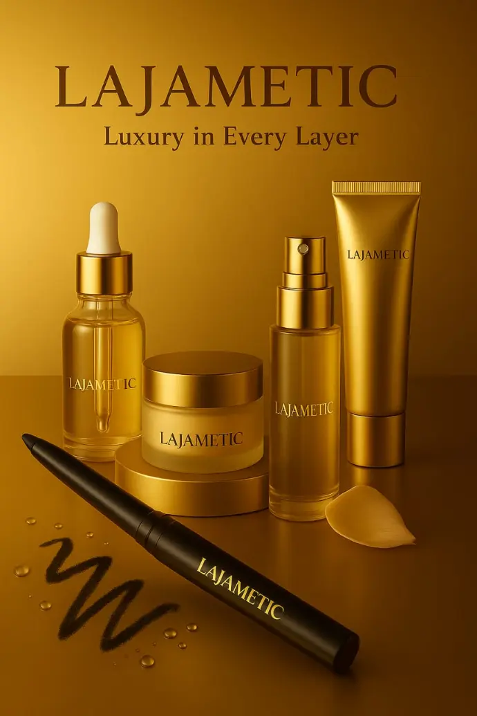 The signature gold aesthetic, elegant typography, and premium tone of LajaMetic are established.